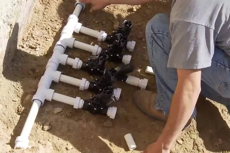 This includes laying pipes, installing sprinkler heads, and setting up any additional components like rain sensors or smart controllers.