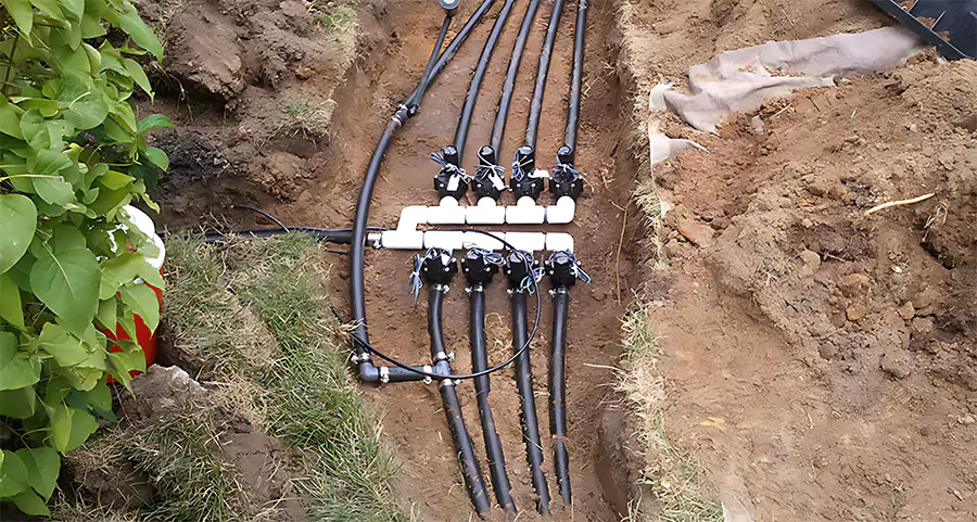 When digging trenches for your sprinkler system, exercise caution to avoid damaging existing utility lines.